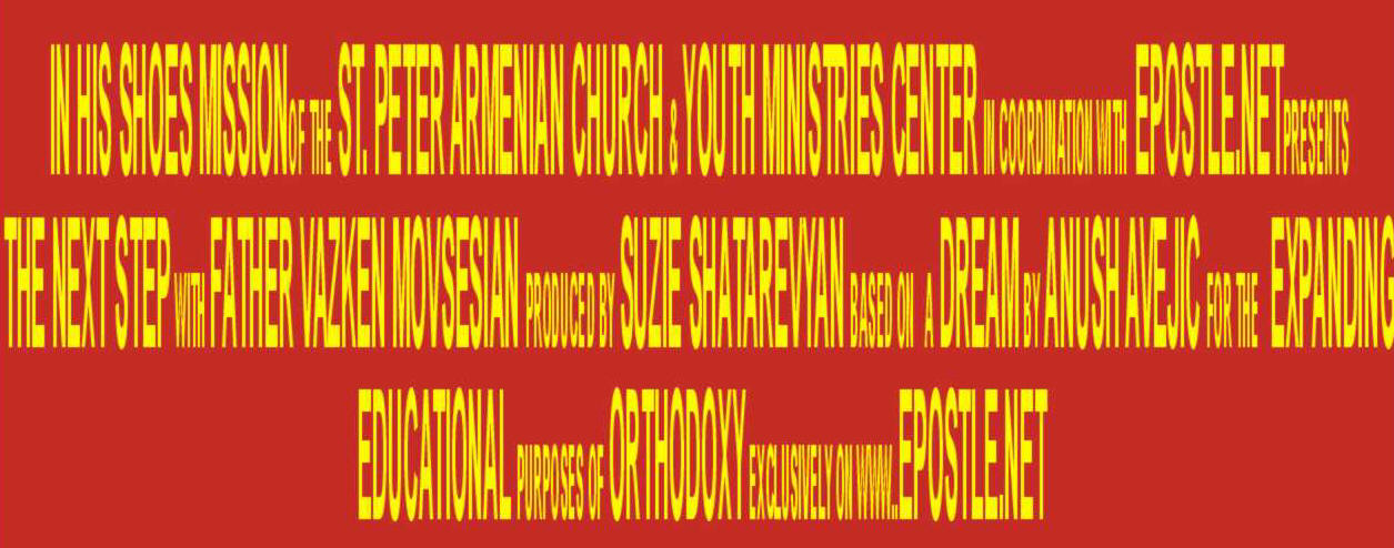 The Next Step with Fr. Vazken Movsesian Updated Wednesdays 8PM- PST The same classes you’ve come to enjoy and learn from are now being broadcast on the Internet (also available on CD). Taught by Fr. Vazken Movsesian, each session delves into the understanding of the ancient Armenian Orthodox faith in life today. If you’re looking for the missing pieces in life’s puzzle, if you want to do more than memorize a few Bible verses and if you are ready to think, download a session. |